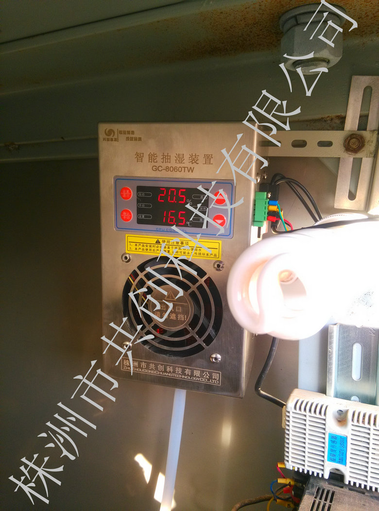 現場環境描述:變電站位于郊區,梅雨季節長期濕度達80%RH。變電站戶外GIS斷路器空間1.5立方。安裝抽濕器4小時后完quan解除至今。現場濕度目前控制在70%RH。