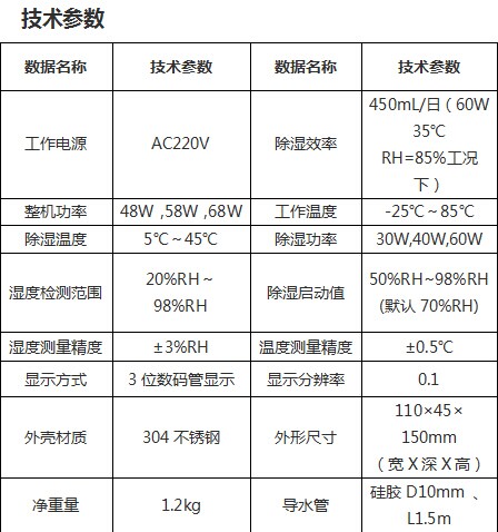 4、 濕度、溫度傳感器24小時實時采樣,超出設定啟動值自動除濕;